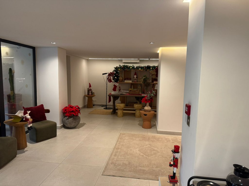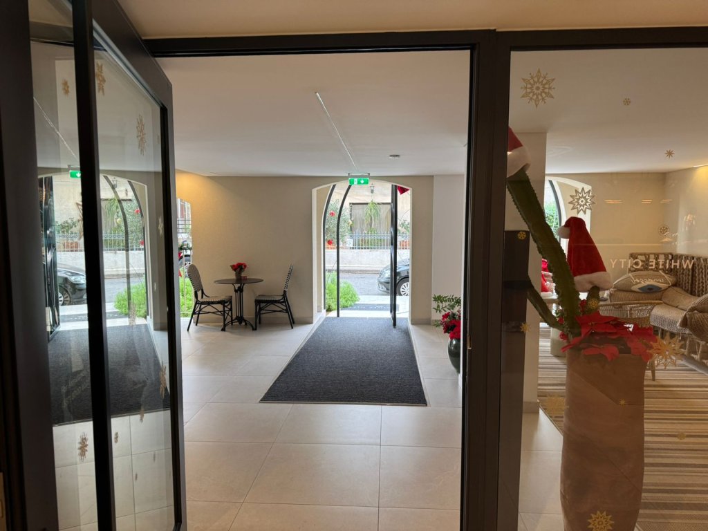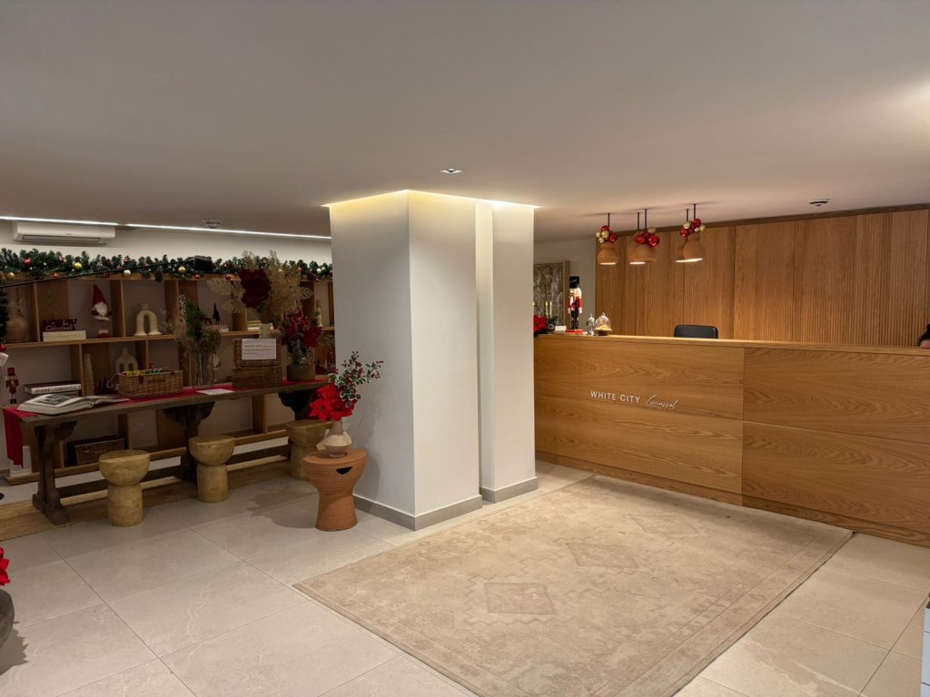 The exterior features clean lines, spacious balconies with glass railings, and sophisticated design details, creating a truly impressive presence. At the entrance, a welcoming concierge area enhances both security and luxury—perfect for residents who value high-standard living.