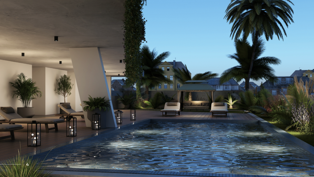 – Access to communal pool, gym, and landscaped gardens