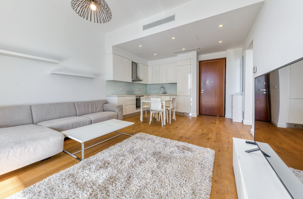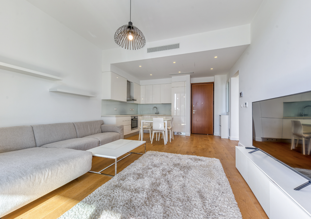 The apartment features one bedroom, one WC, and is designed to high energy-efficiency standards, holding an Energy Efficiency Class A+ rating. Its prime location close to the beach makes it an excellent choice