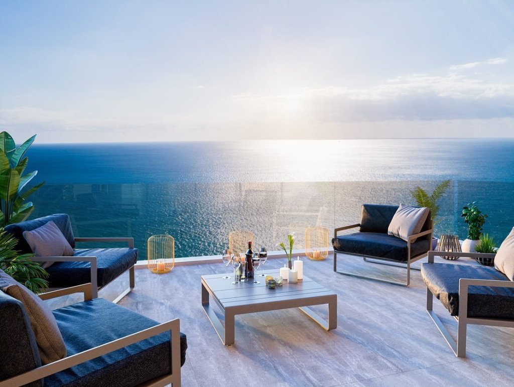 A large balcony extends the living area outdoors, providing a serene setting for al fresco dining, entertaining, or simply enjoying sunsets over the Mediterranean.