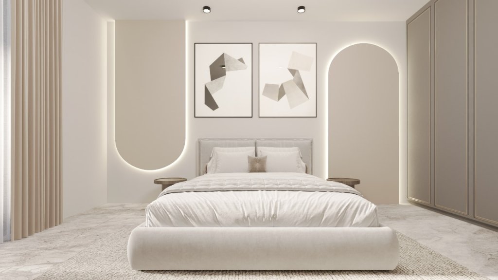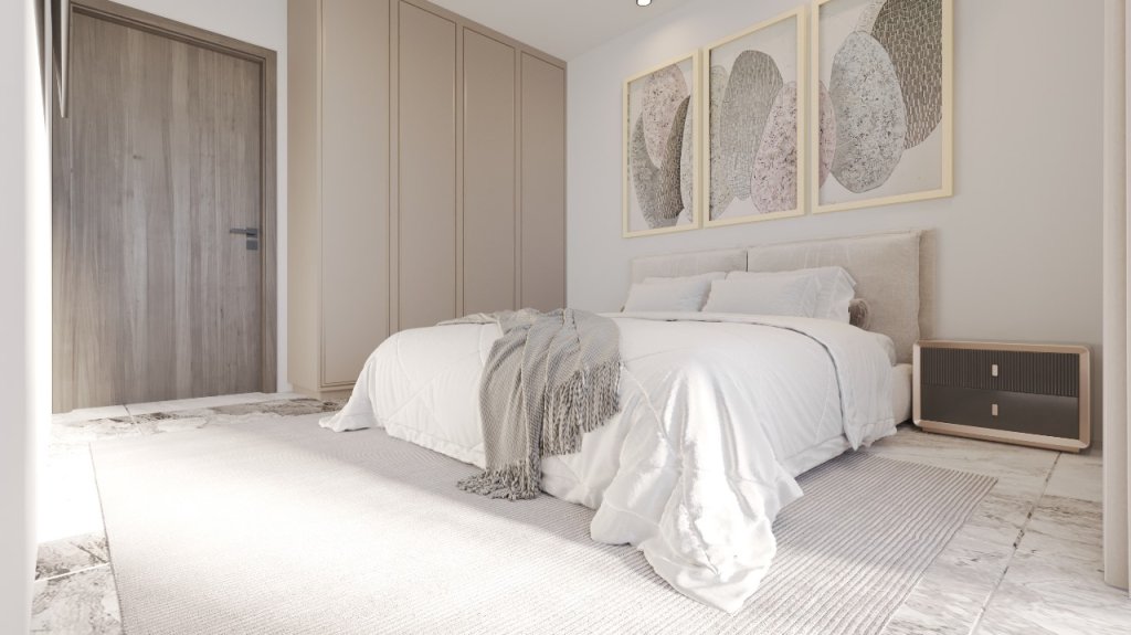 Master Bedroom: A spacious suite with built-in wardrobes and a private, relaxing atmosphere. Positioned for maximum comfort and privacy.