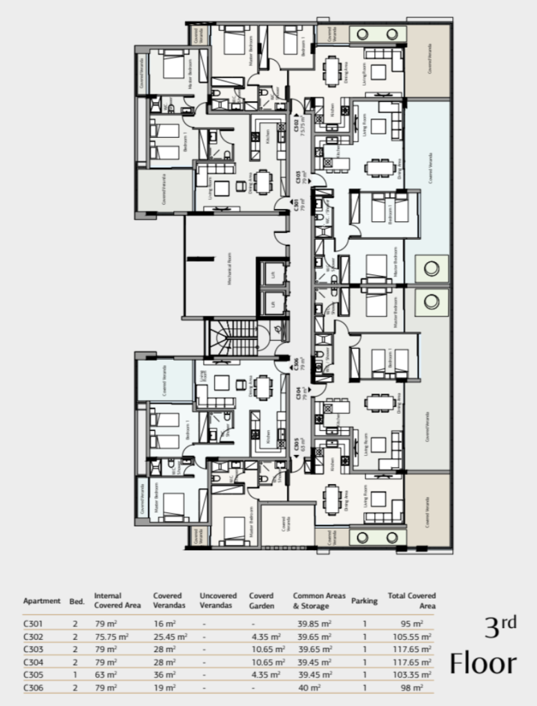 The 2-bedroom apartment offers a refined balance of space, light, and comfort, ideal for small families or professionals seeking a modern home in a secure gated community. With open-plan living areas and panoramic views from large balconies, it embodies the spirit of contemporary Mediterranean living.