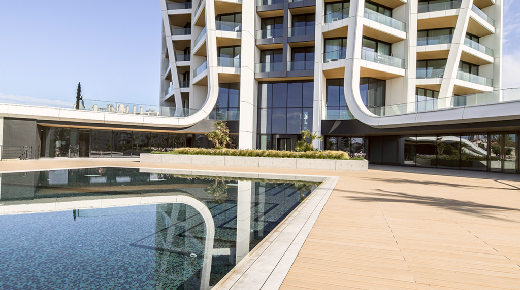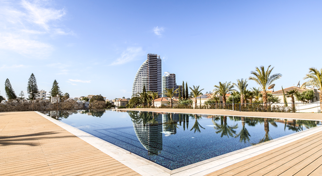 Unique residential high-rise complex of 25 floors with hotel facilities developed with the world’s latest architecture & planning trends in mind. Residents will enjoy unbelievable see panoramas and the exceptional atmosphere of comfort and relaxation in the elegant gated community with exceptional in-door amenities like concierge, SPA, common outdoor pool, heated indoor pool, gym, tennis court, green area and underground parking.The complex blends ideally in the urban landscape of Limassol’ sought after tourist area thanks to the well-balanced mix of sophistication, comfort and landmark design by a leading London architecture studio. Limassol’s best sandy beaches, shops, restaurants and other holiday pleasures are in a stone’s throw.The development comprises one-, two-, three- and four- bedroom luxurious apartments, penthouses and duplexes (sky houses) with private pools on the roof. Each unit has 3.15 m height ceilings and top quality finishings to astound the most demanding buyer. Most of the apartments offer breathtaking views of the Mediterranean sea, Limassol city and its picturesque hilly suburbs.