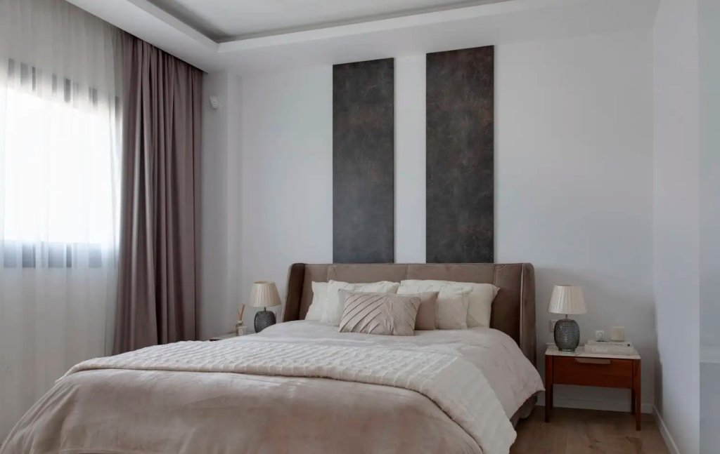 The home reflects understated sophistication. The living area is designed in calming neutral tones, enhanced by soft fabrics and elegant details that create a welcoming yet stylish atmosphere. Large windows allow natural light to flood in, seamlessly connecting indoor comfort with outdoor tranquility.