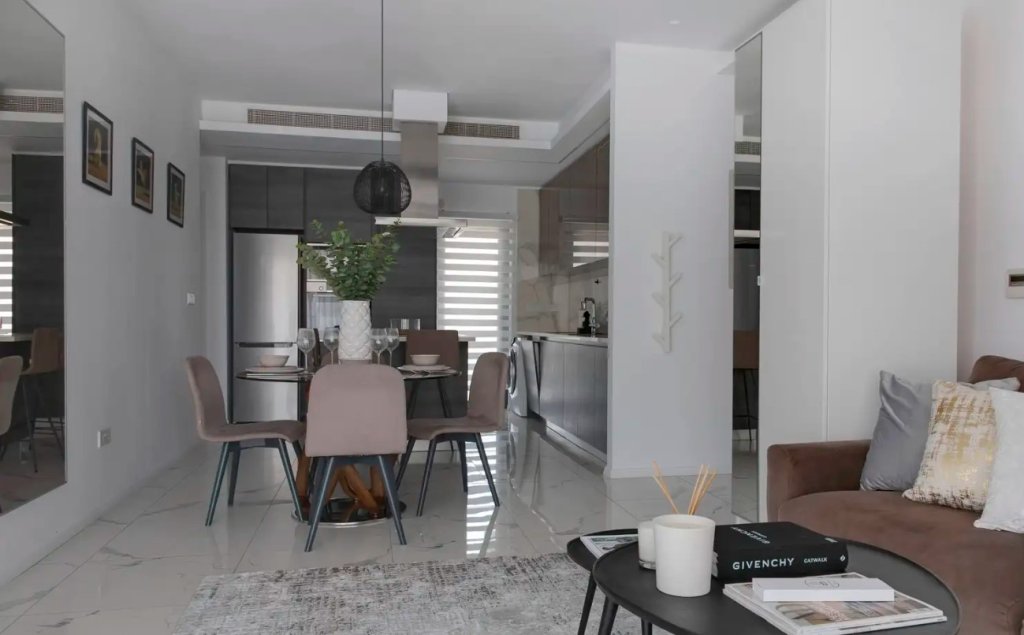 A two bedroom fully furnished residence that redefines modern coastal living in the heart of Germasogia, where elegance meets everyday comfort.