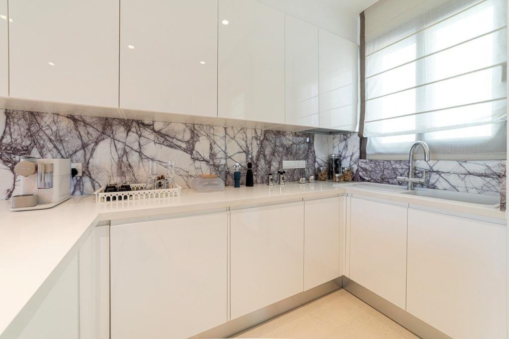 - Marble floors and walls in bathrooms
