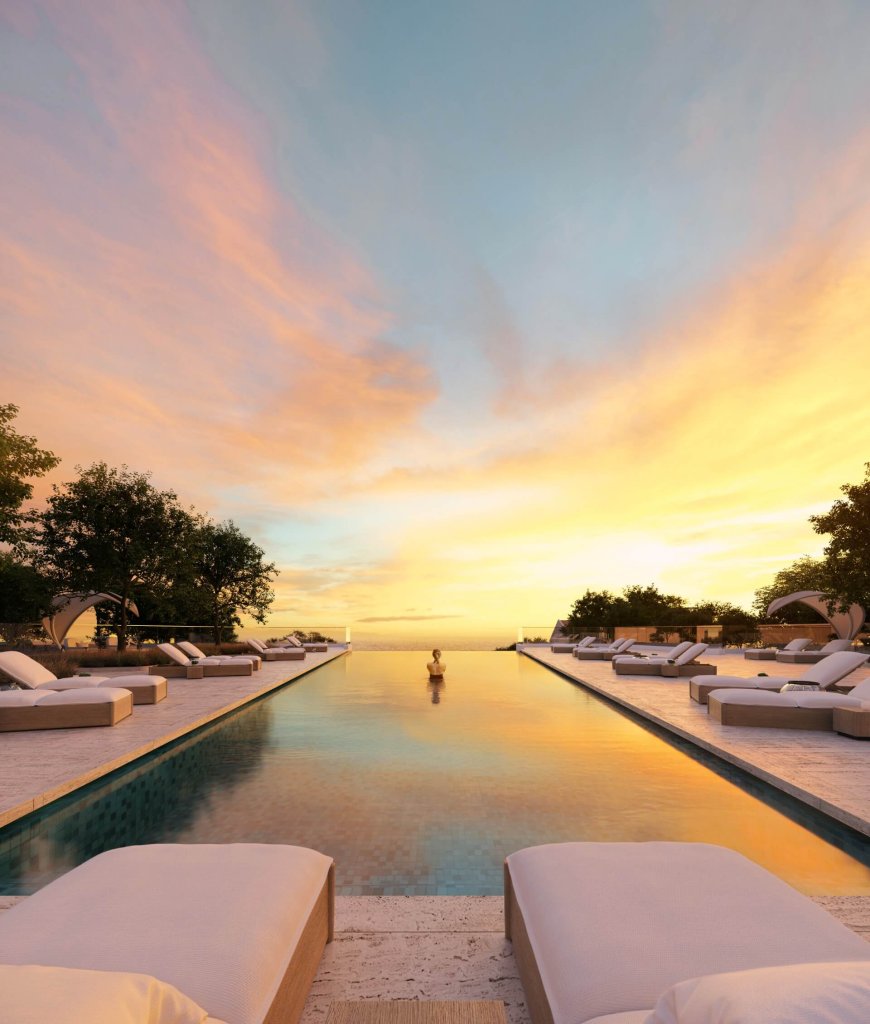 The kitchen blends modern style with practicality, equipped with high-end cabinetry, premium countertops, and integrated appliances. Its open design creates a natural flow with the social spaces of the home.