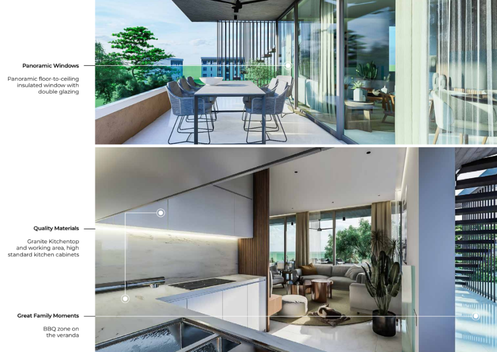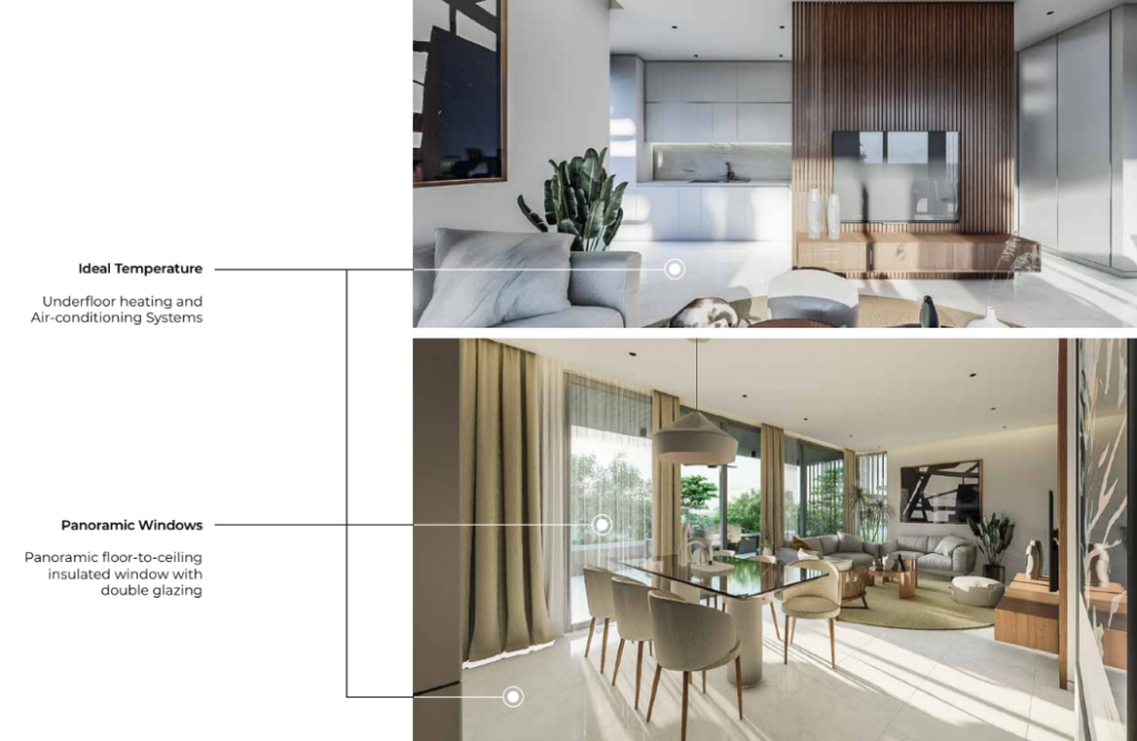 Expansive floor-to-ceiling windows flood the interior with natural light while connecting the indoor space to the surrounding views. Large verandas extend the living area during the warm season, creating a fluid transition between inside and out. The architectural approach focuses on calm elegance, clean lines, and balanced proportions—delivering a sense of understated sophistication.