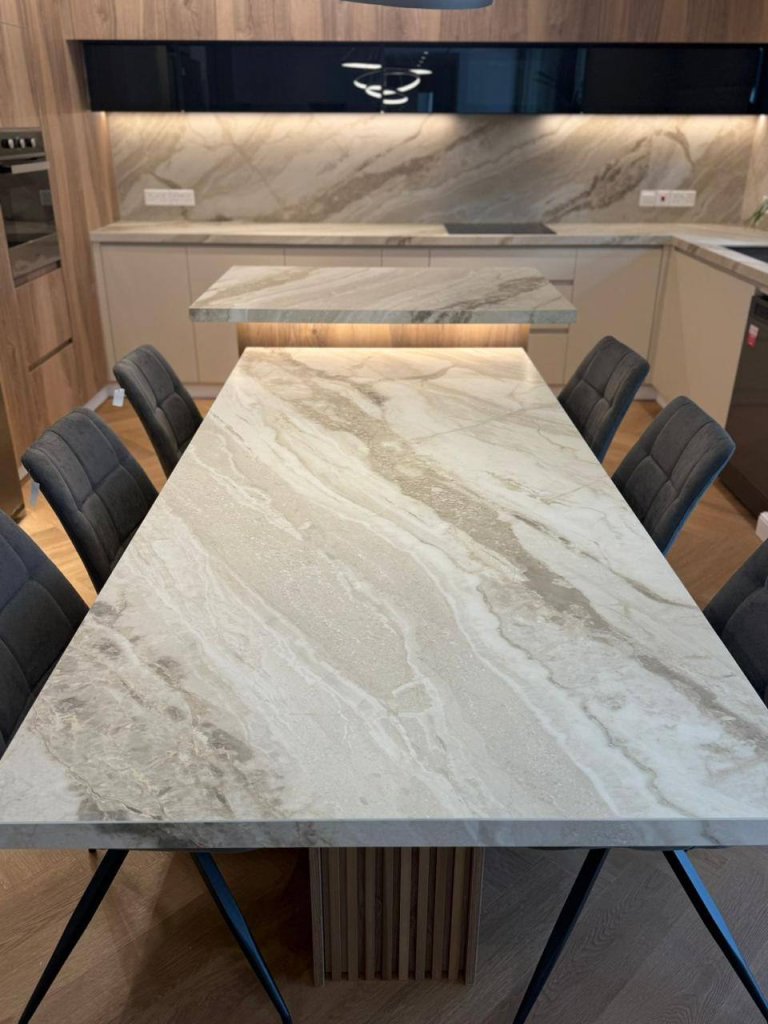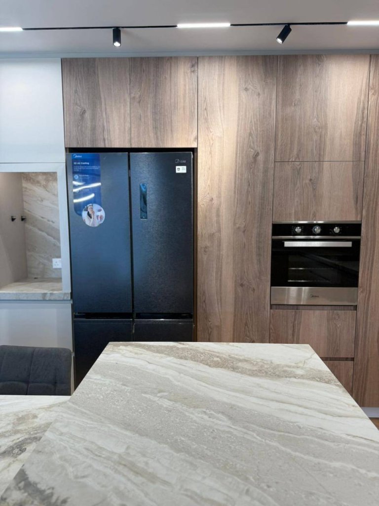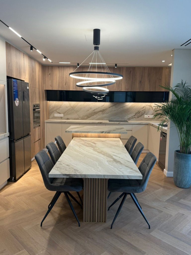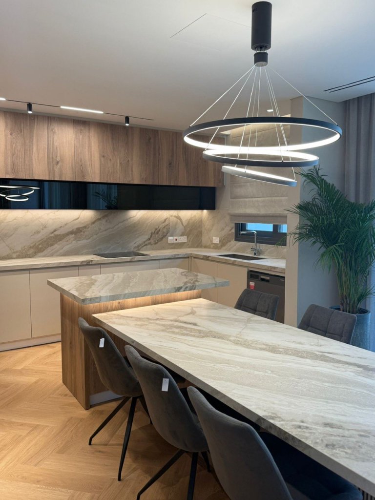 The kitchen is modern and practical, designed with sleek cabinetry, premium finishes, and ample counter space. Its layout ensures convenience for everyday meals as well as for hosting gatherings.