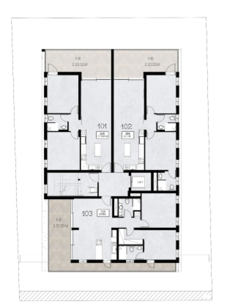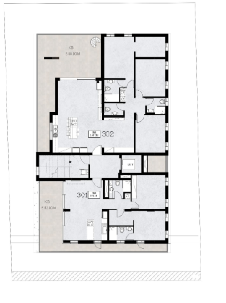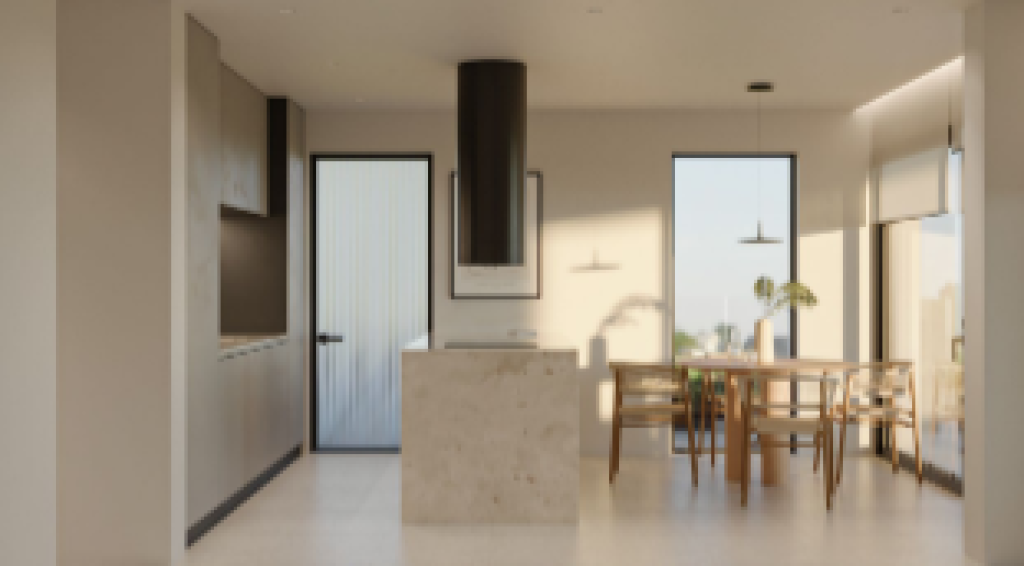 The three-level building features a ground floor with covered parking spaces and dedicated storage areas for all residents. With just eight thoughtfully designed apartments, the development ensures privacy, spacious layouts, and an abundance of natural light through brilliant full-height windows.