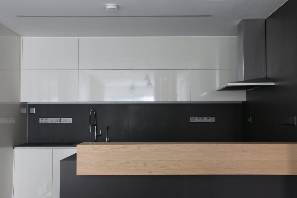 The open plan shared living space is fitted with a contemporary kitchen, that also encompasses the dining and living areas, it also features a home office space. The living room is fitted with seamless glass windows providing an unobstructed panoramic view. Riverside residence has one master bedroom with a walk-in closet and en-suite bathroom, and two bedrooms with built in closets that share a bathroom, in addition to a guest bathroom