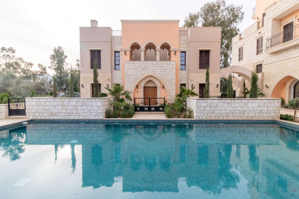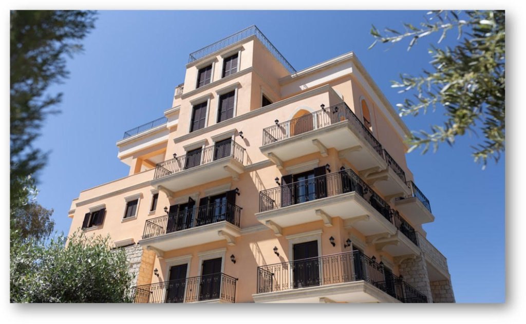 The design of this exceptional residential complex is executed in the classical style of Cypriot architecture. The facade is elaborately decorated with arches reflecting the Venetian stone bridge located to the right of the project.