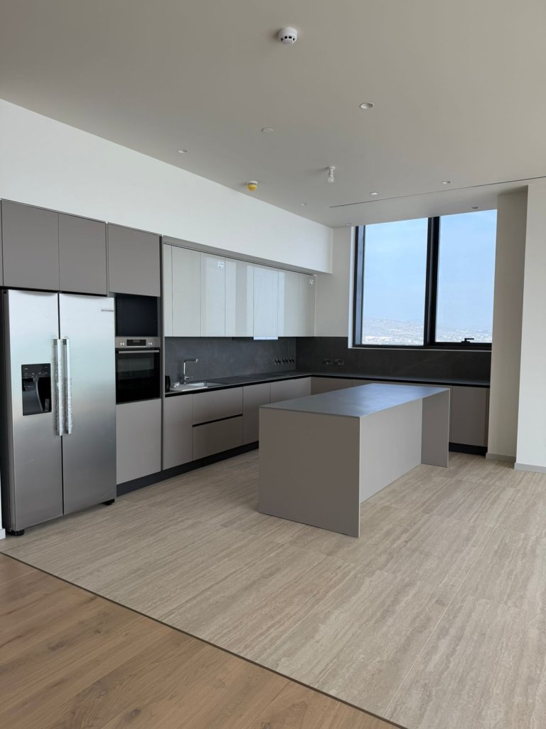 Designed with modern elegance, the apartment includes underfloor heating, a VRV climate control system, and a fully fitted kitchen with premium built-in appliances. Large floor-to-ceiling windows fill the interior with natural light and frame stunning views of the Mediterranean.