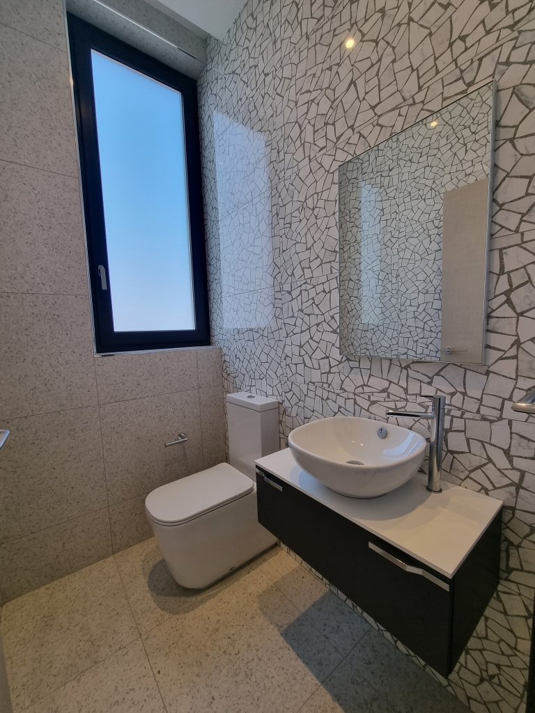 The master suite is a sanctuary of its own, with an en-suite bathroom, walk-in wardrobe, and direct access to the veranda. Two additional bedrooms provide comfort and flexibility—perfect for children, guests, or creative use as a study or home office. Each bathroom is designed with premium finishes, blending elegance and functionality.