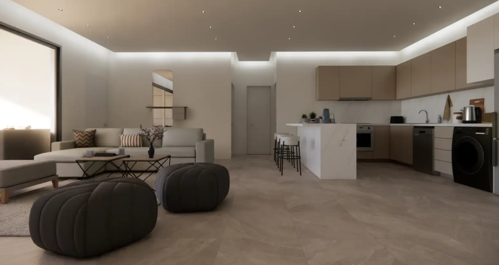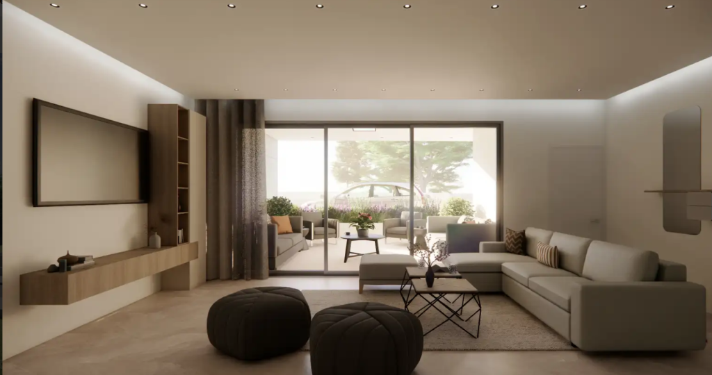 This modern three-bedroom apartment spans 117 sq.m and is located in a newly built, high-standard complex in Lympia, offering easy access to the highways and just 15 minutes from Nicosia or Larnaca and 40 minutes from Limassol.