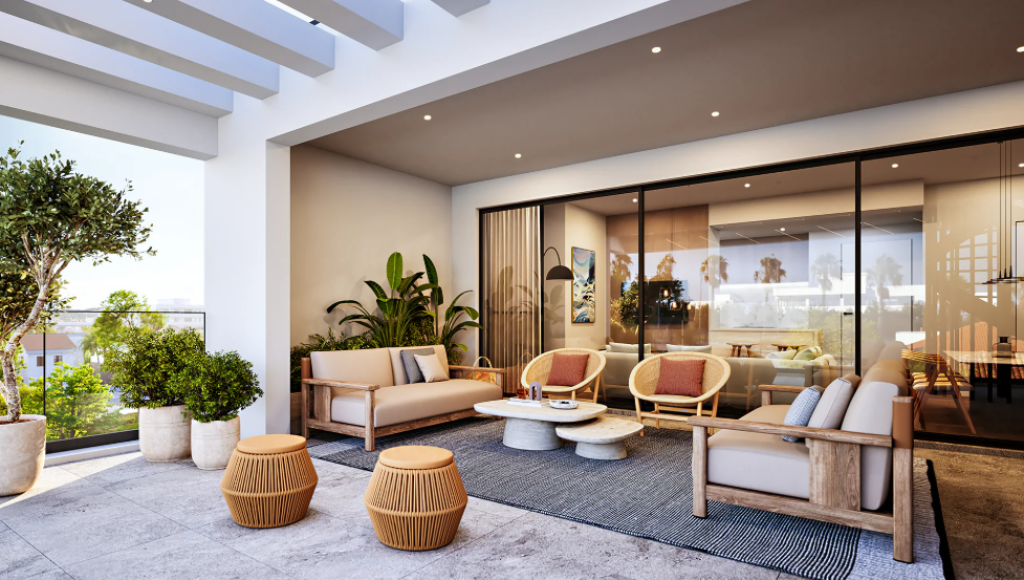 The apartment opens into a generous open-plan living and dining area, designed for families and those who value both comfort and style. Large sliding doors extend the interiors to a covered veranda, creating the perfect flow for indoor-outdoor living.