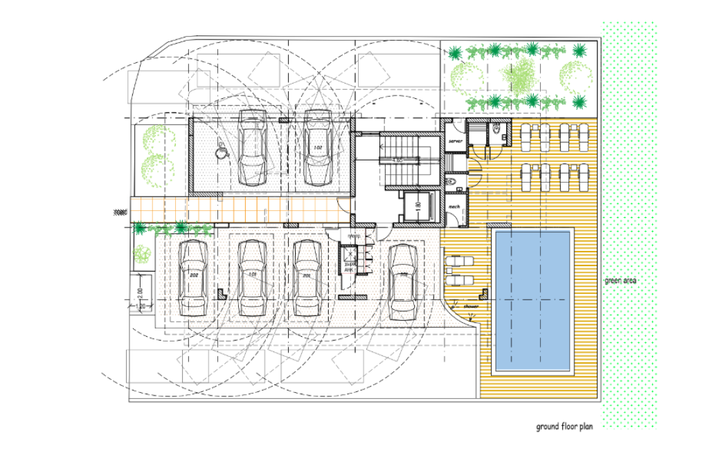 The architecture promotes both privacy and connectivity, with careful orientation and structural elements that enhance the living experience while offering views of the surrounding scenery.
