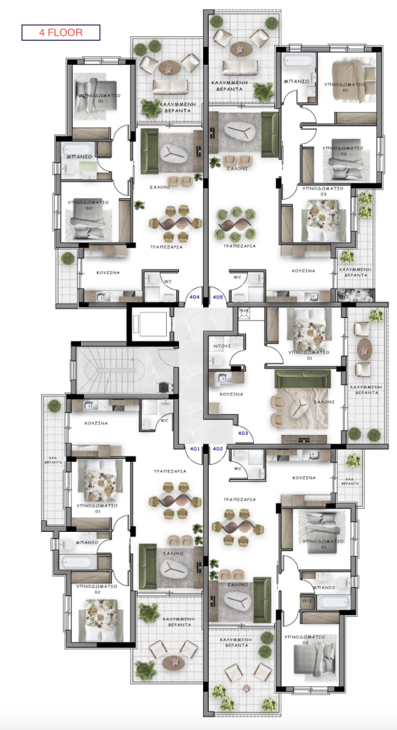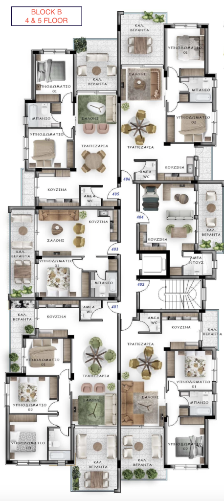 These spacious 3-bedroom apartments are designed to accommodate families or those who need more space, with thoughtfully planned interiors and quality craftsmanship. The layout includes three generously sized bedrooms, a master with en-suite bathroom, a family bathroom, an open-concept kitchen and living area, and a large veranda. Abundant natural light, elegant finishes, and functional storage ensure both comfort and style.