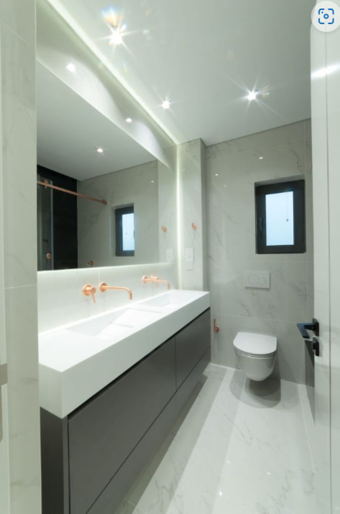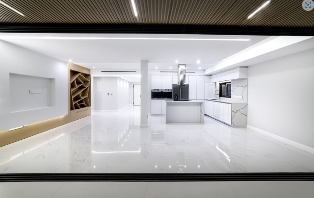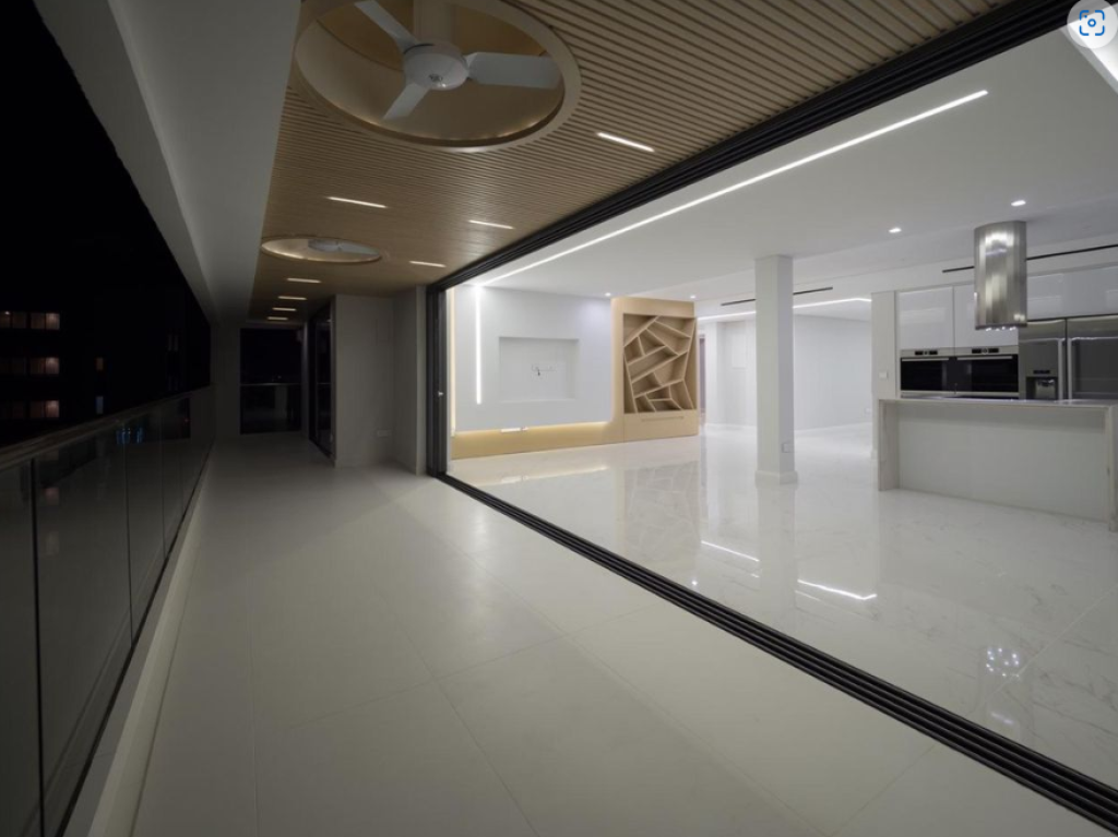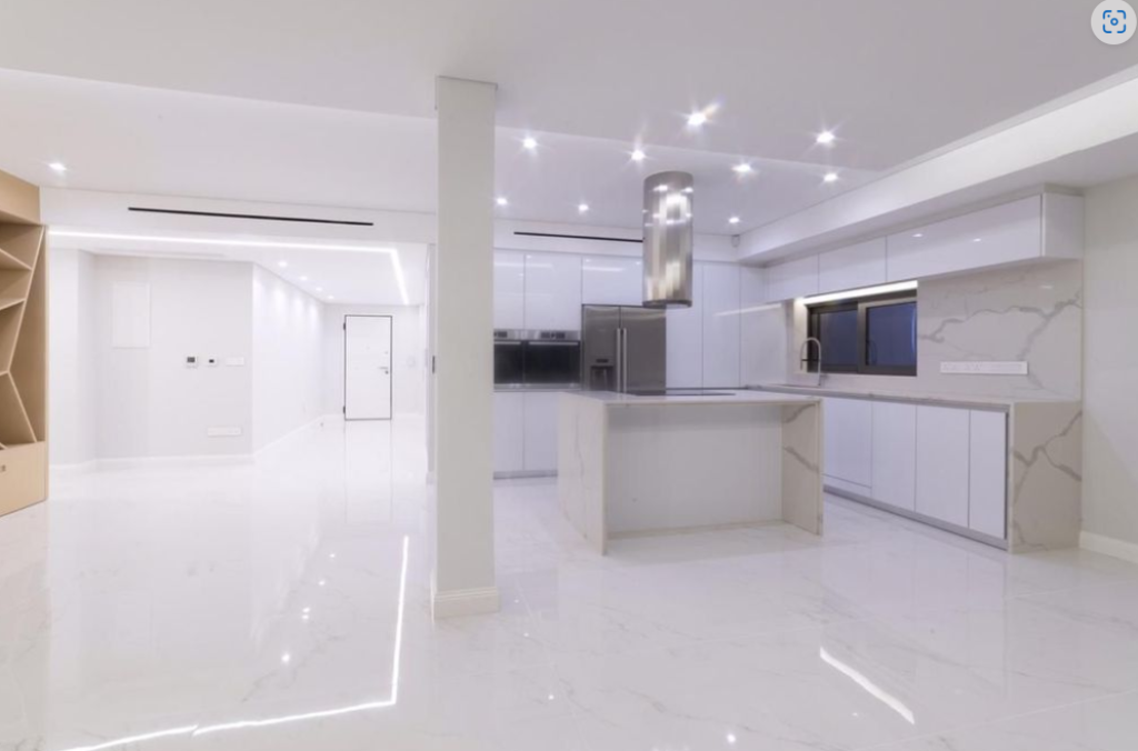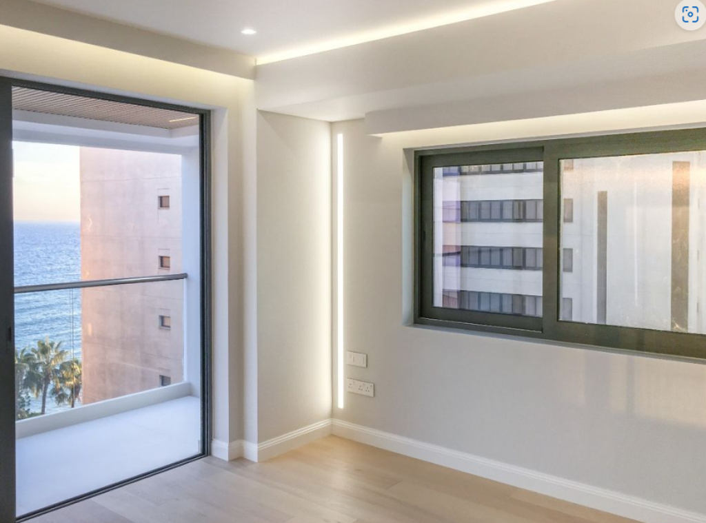 The apartment offers bespoke design, crafted with high-end finishing such as marble, granite stones, real wood floors, open plan design kitchen, and living-room. Includes a guest w/c, 1 master bedroom with en-suite bathroom and a large glazed walk-in closet, 2 additional double bedrooms with en-suite bathrooms, and a large outdoor veranda, accessed from the living room area via fully folding glazed doors.