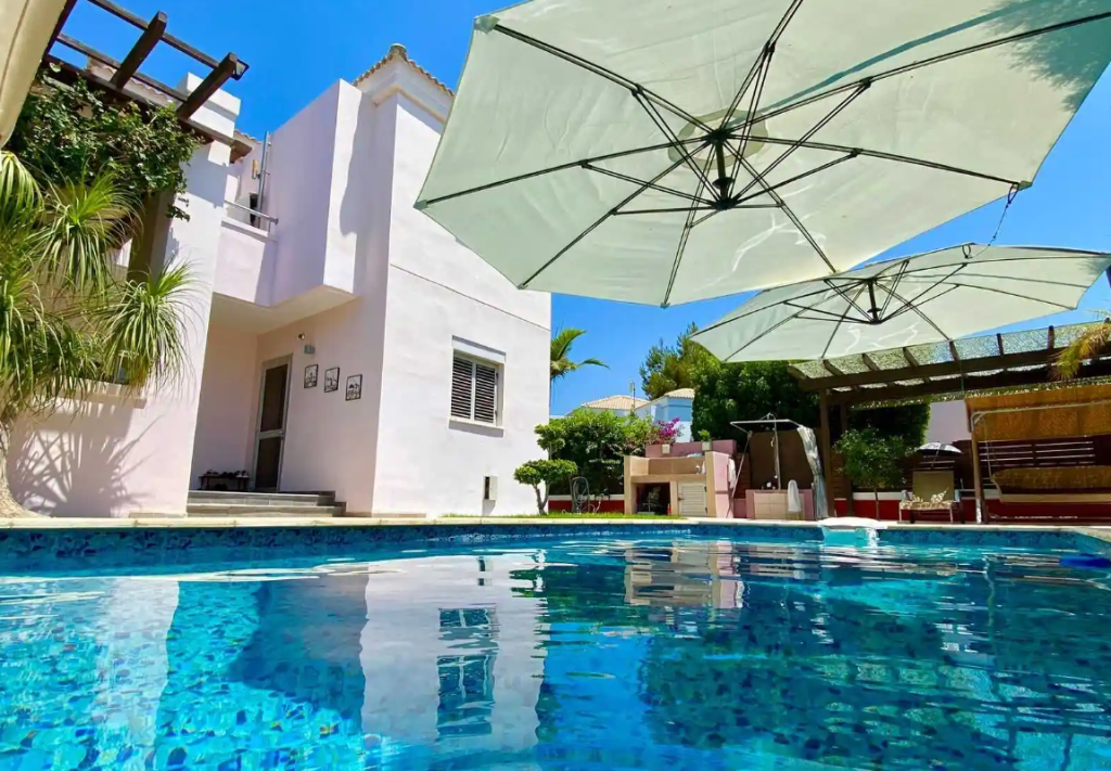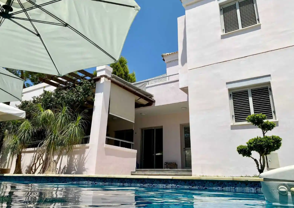 Nestled in the exclusive Amathusa Coastal Heights, this exquisite 3-bedroom villa epitomizes coastal luxury living. Situated just 200 meters from the azure sea and a stroll away from amenities like supermarkets, restaurants, and cafes, the residence offers both convenience and serenity.The meticulously designed house features:3 bedrooms3 bathrooms, including a master bathroom and two showersA well-appointed kitchen with a dining area2 spacious verandasA lush mature garden with a covered patioBBQ area for outdoor entertainingA private swimming pool adorned with a new linerAir conditioning for climate controlDiesel central heatingPhotovoltaic systemCovered parking with space for two cars adjacent to the houseAn internal area of 150 sq.mBasement area of 11 sq.mVerandas spanning 109 sq.mA generously sized plot measuring 420 sq.mDelivered in December 2008Adding to the allure, the complex boasts a wealth of shared amenities, including 2 communal swimming pools, a gym, a sauna, a playground, and beautifully landscaped gardens. This residence seamlessly combines elegance, comfort, and a vibrant coastal lifestyle.
