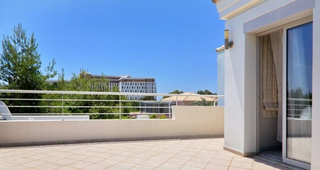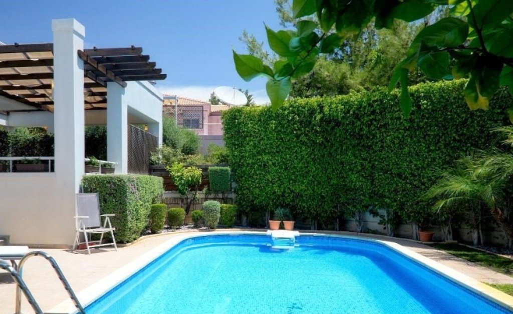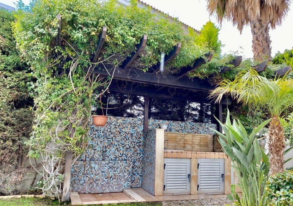 Beautiful sea view from the 2nd floor with a large veranda, Beautiful mature garden with a covered patio, BBQ area and a private swimming pool, Air conditioning, central heating, Wi-Fi, covered parking.