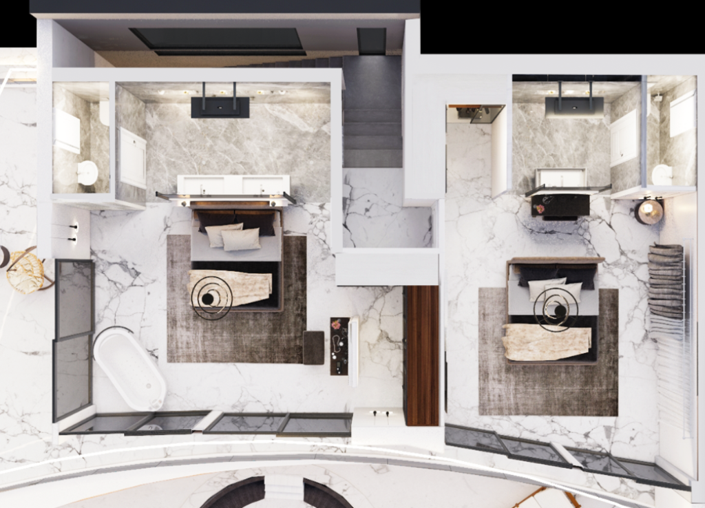 On the second floor there are two double bedrooms, each with its own bathroom, designer bath, with fantastic views of the mountains, ideal for reading a book, with access to the terrace and a dressing room.