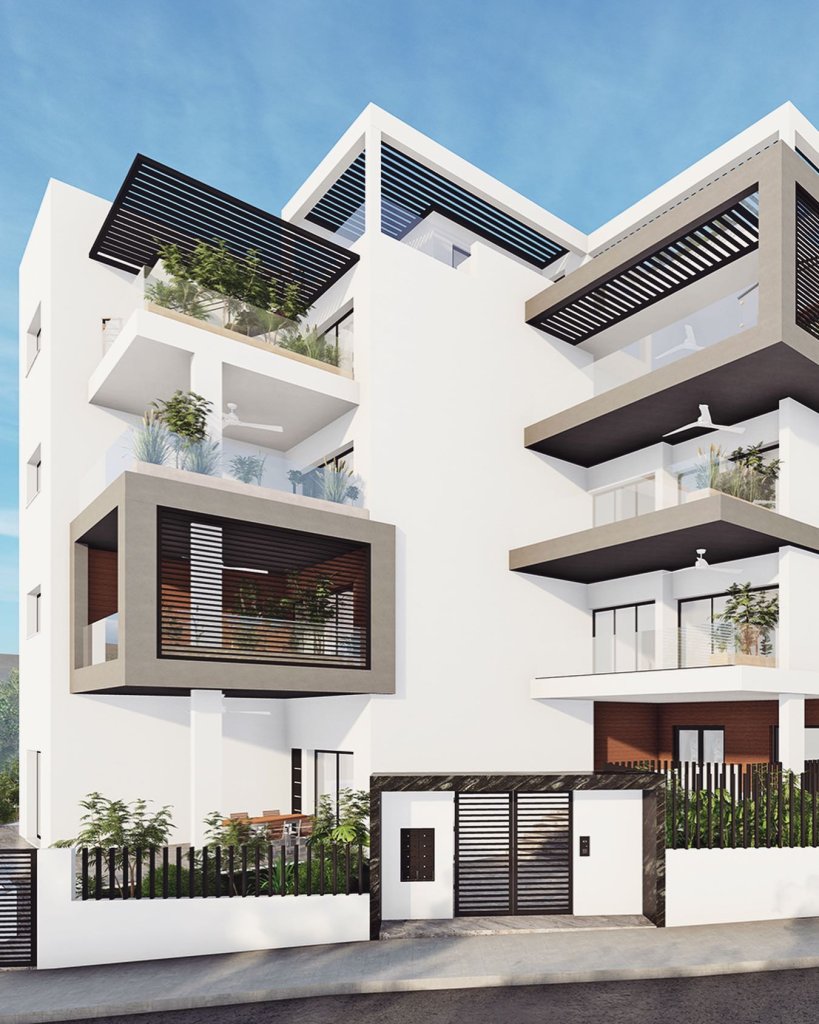 The project is set in Germasogeia Area of Limassol overlooking Limassol’s coastline. It consists of 10 luxurious modern apartments, each with covered parking out of which two flats (1 two-bed flat and 1 three-bed flat) are situated on the ground floor with their own private gardens and covered parking. Two three-bed penthouses are situated on the top floor with their own private roof garden and extra-space room. The remaining flats are situated on the first and second floor (2 one-bed flats, 2 two-bed flats and 2 three-bed flats).
