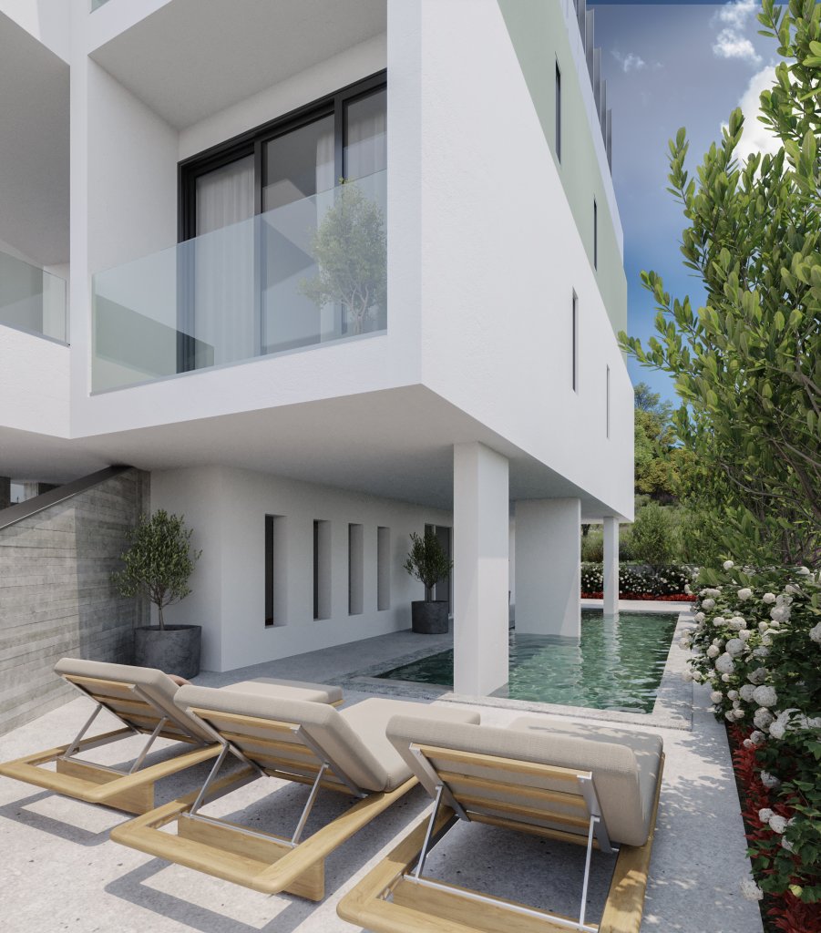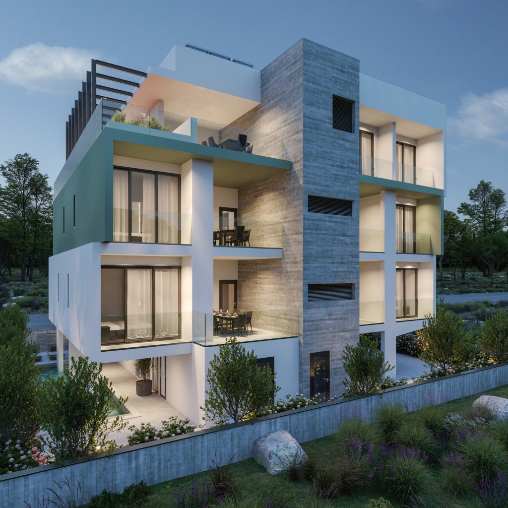 This luxurious boutique block provides 5 apartments in total, a shared swimming pool and private parking and located in the popular Universal area of Paphos, providing the ultimate base for convenient city living for local professionals and those looking to relocate. The project consists of 5 apartments in total, 2 bedroom apartments are available on floors one and two and the exclusive 3 bedroom penthouse suite on the last floor. Each unit provides a spacious and cleverly designed layout with ultra-high quality finishes, with relaxation areas and option for outdoor living on the large balcony spaces. The penthouse apartment will benefit from a private terrace garden, outdoor area and private pool where they can enjoy the panoramic sea and mountain views.