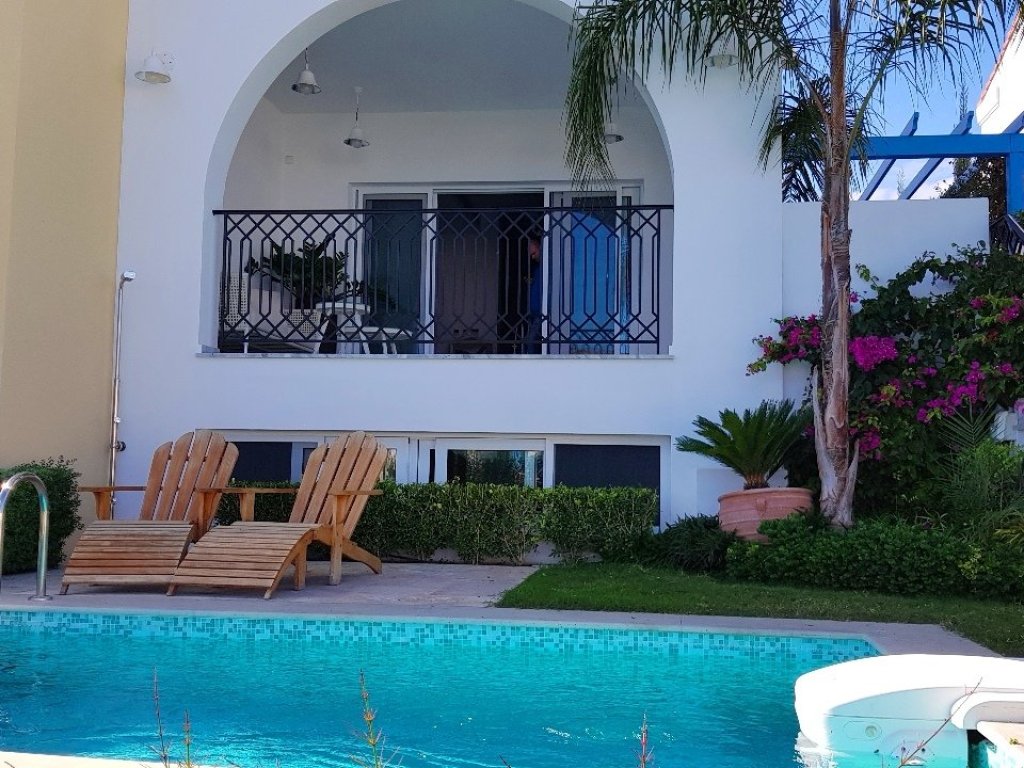 It’s a semidetached house with private swimming-pool, with an amazing view, with its private yacht parking. The kitchen is fully equipped, the house is fully furnished, high ceiling, air-conditioning with VRV system, under-floor heating, alarm system.