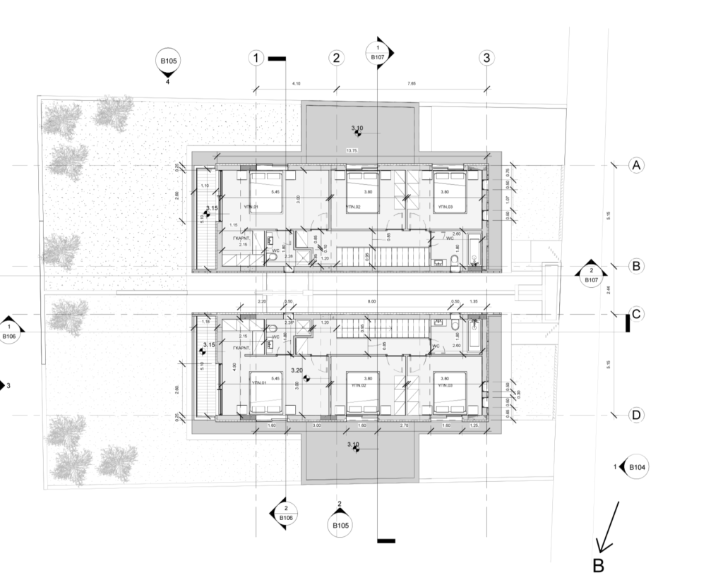 -The first floor offers a master bedroom with en-suite bathroom, two bedrooms, a washing machine area and a veranda overlooking the backyard.