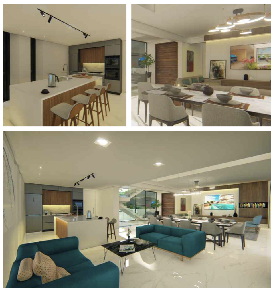 With its sleek architectural form, extensive glass surfaces, and balanced geometric shapes, the villa is designed to maximise light, openness, and scenic outlooks. Its façade blends modern sophistication with natural textures, creating a timeless coastal aesthetic.