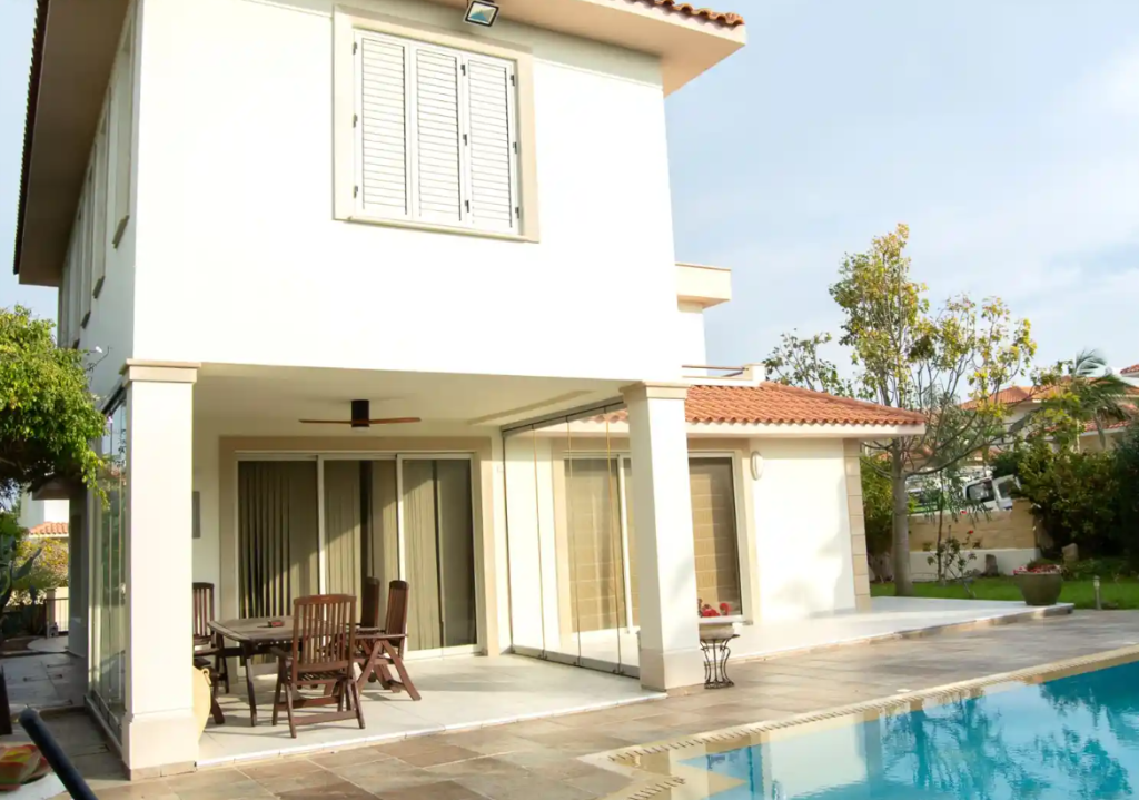 For sale: a two-story villa with three bedrooms and a swimming pool in the Atlantis Beach Gardens complex, just a few minutes' walk from the sea and the beach area. This complex is located in the quiet, seasonally touristic area of Pervolia, Larnaca. Nearby, there is a hotel, restaurant, park with a children's playground, pedestrian walkway, and the lighthouse. Larnaca International Airport is just a 15-minute drive away. There is an easy access to the popular tourist resort of Ayia Napa and the highway leading to all major cities. The total area of the house is 206 sq.m. The villa is ready for immediate occupancy.