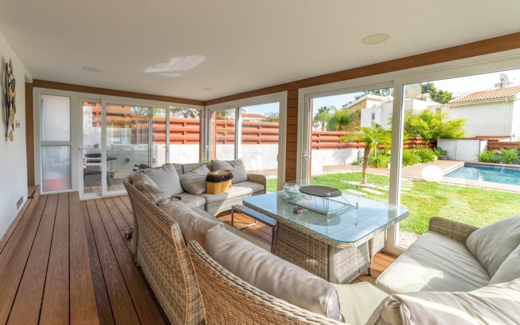 A beach house in Limassol, with 4 bedrooms, 4 bathrooms, fully furnished with brand new furniture tiles, equipments and split units.