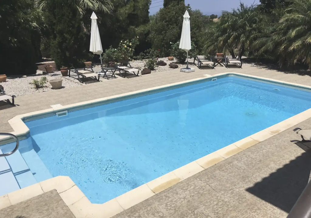 Well-maintained 4-bedroom, 3-bathroom property set over three floors, offering two lounges, a fully equipped kitchen with integrated appliances, utility room, garage/storage, carport and secure parking for several cars. The home features landscaped gardens, a swimming pool with Roman steps, air conditioning and oil central heating. Set on a 2,800 m² plot with 290 m² of accommodation, the property is sold with title deeds.