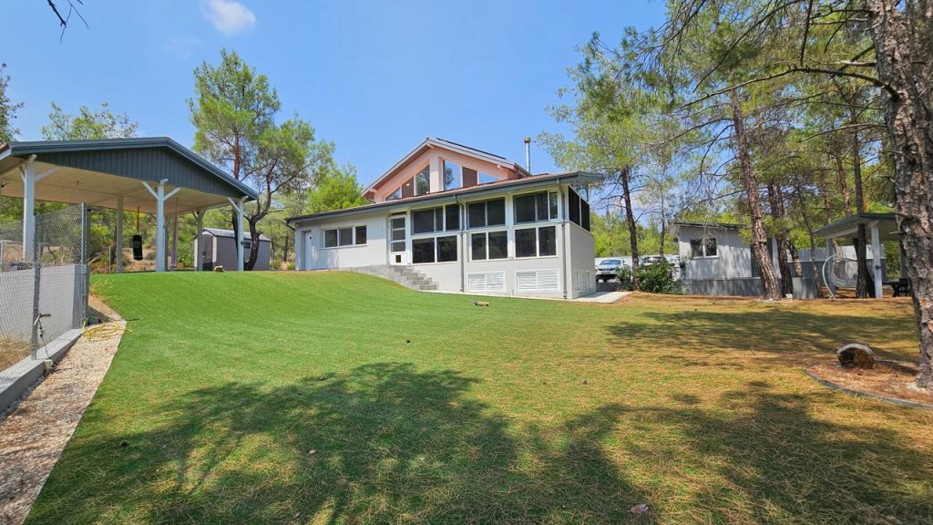 Spacious and elegant 4 bedroom, 3 - bathroom, 4- toilet house available for rent in Trimiklini. This stunning property, with is only 1 year old, boasts a modern design and is constructed using high- quality materials. The house features 4 double bedrooms, 2 of which are ensuite, swell as separate studio outside. Additionally, there’re 3 covered verandas, a barbeque area, a sport area, and plenty of storage space. For your security, the house is equipped with CCTV and an alarm system. Situated on a generous plot of 1350sqm, the covered area of the house spans approximately 200sqm. The property also benefits from a 10 kw photovoltaic system and an electric car charging station, floor heating, fire place and many more.