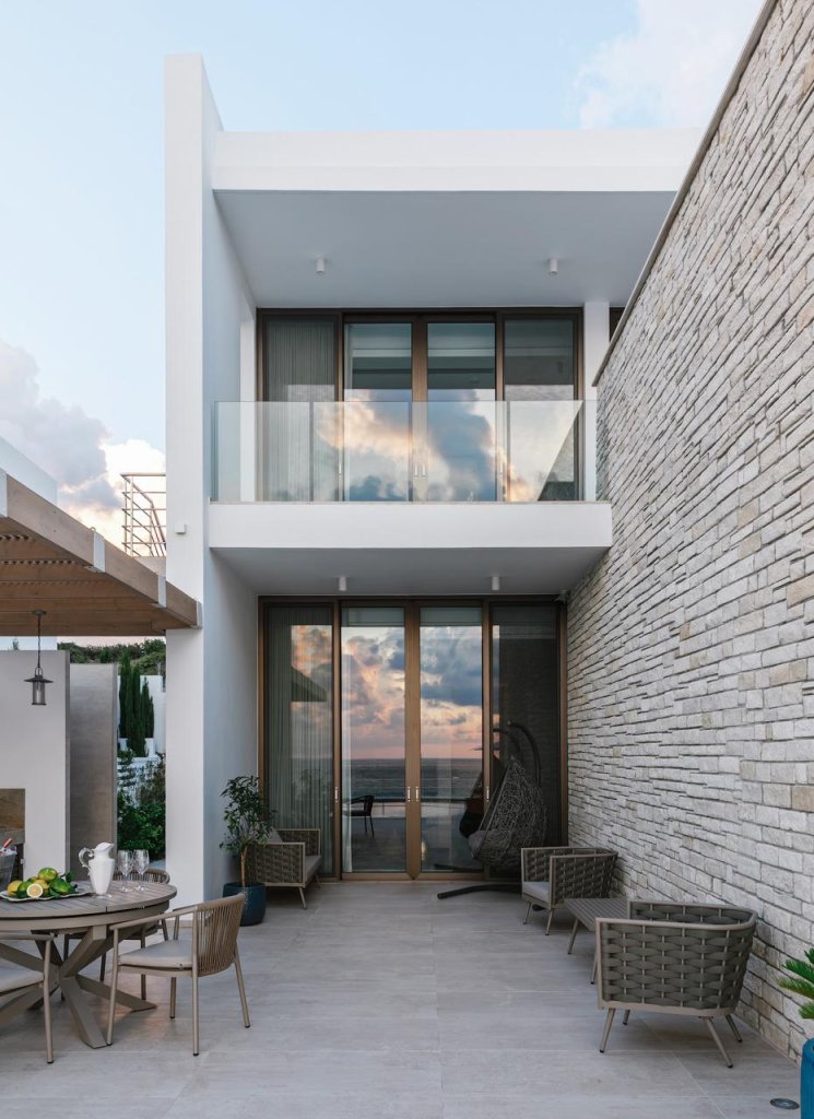 Large windows throughout the villa showcase the stunning Mediterranean landscape, while nearly every room offers the chance to enjoy unforgettable sunsets.
