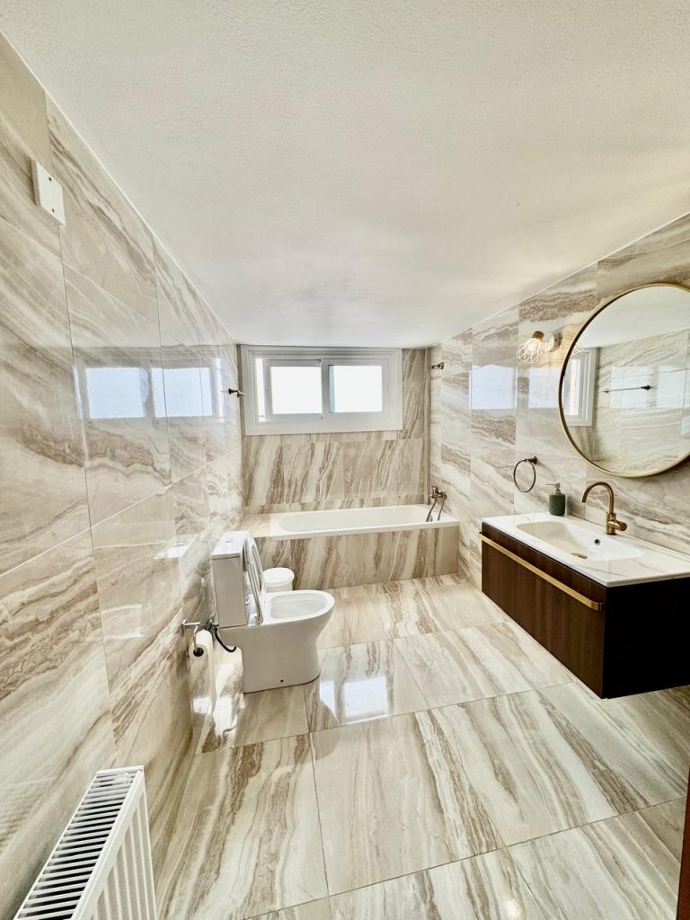 This stunning five-bedroom penthouse on the 5th floor, located in the heart of the city on Gladstonos street, near
