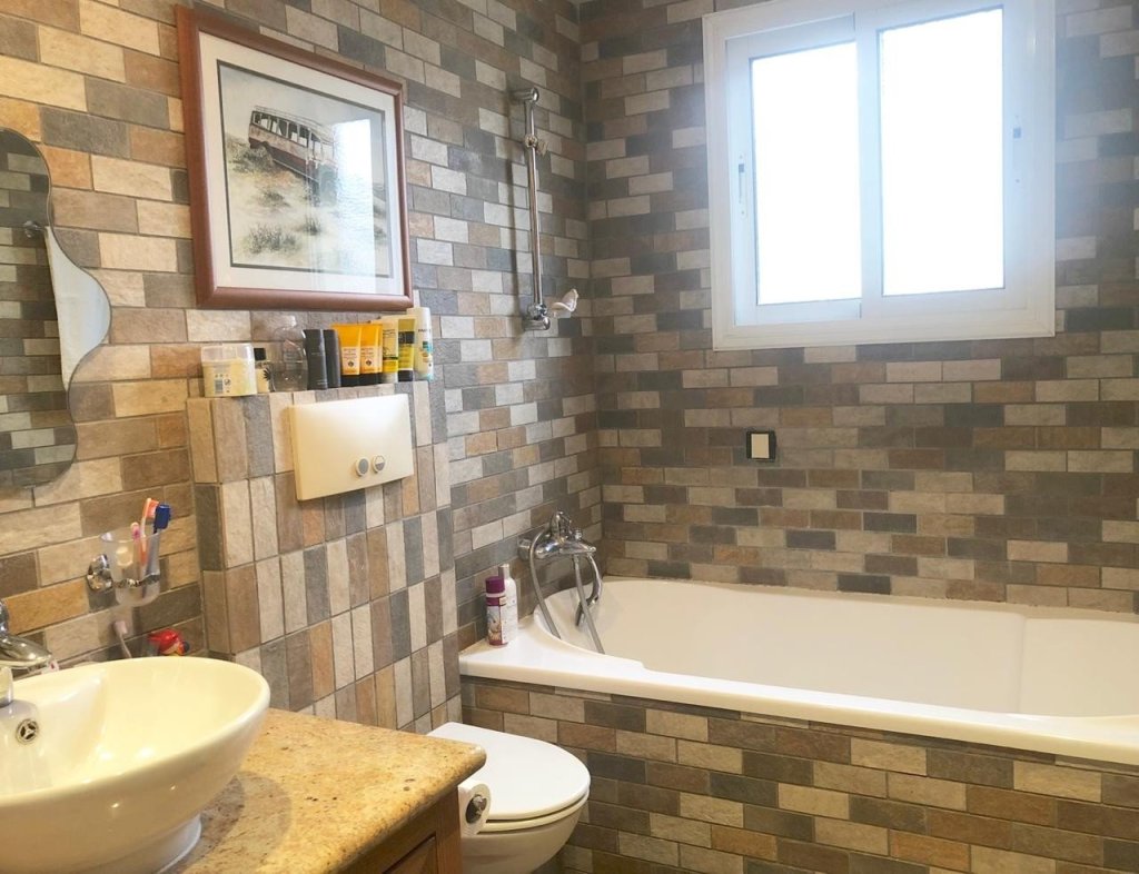 The villa has 4 bedrooms plus an office, 4 bathrooms, a mature garden, separate kitchen. One bedroom with en suite bathroom is located on the ground floor.
