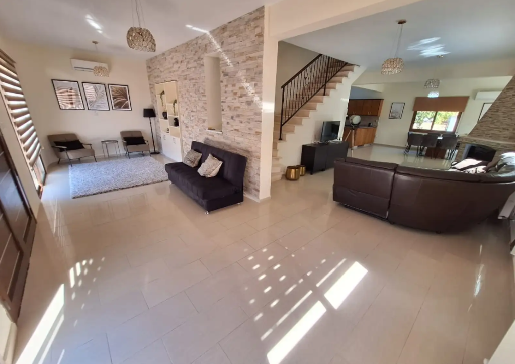 This house has air conditioning, an outdoor pool and a terrace. It is located in Tremithousa, 5 minutes from the International school of Paphos. This property offers a private pool and free private parking. The house features 5 bedrooms, a kitchen with a fridge and a dishwasher, a washing machine, and 4 bathrooms (2 en suite). The bathroom has a shower.