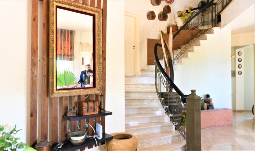 A Huge Villa of 5 bedrooms located in one of the most beautiful areas of Ayia Napa, Mersinia. With a covered area of 720 sqm, this house can accept as many guests as you like, or host dreamable parties in its beautiful spacious garden. Except for the many bedrooms, this villa consists of many areas with their own bathrooms and toilets, which makes it ideal to use it as a holiday house. The view from the garden and the balconies is beyond spectacular, as it is located on a hill, and you can see the whole area from above, including the sea, with your viewing reaching Xylophagou village.