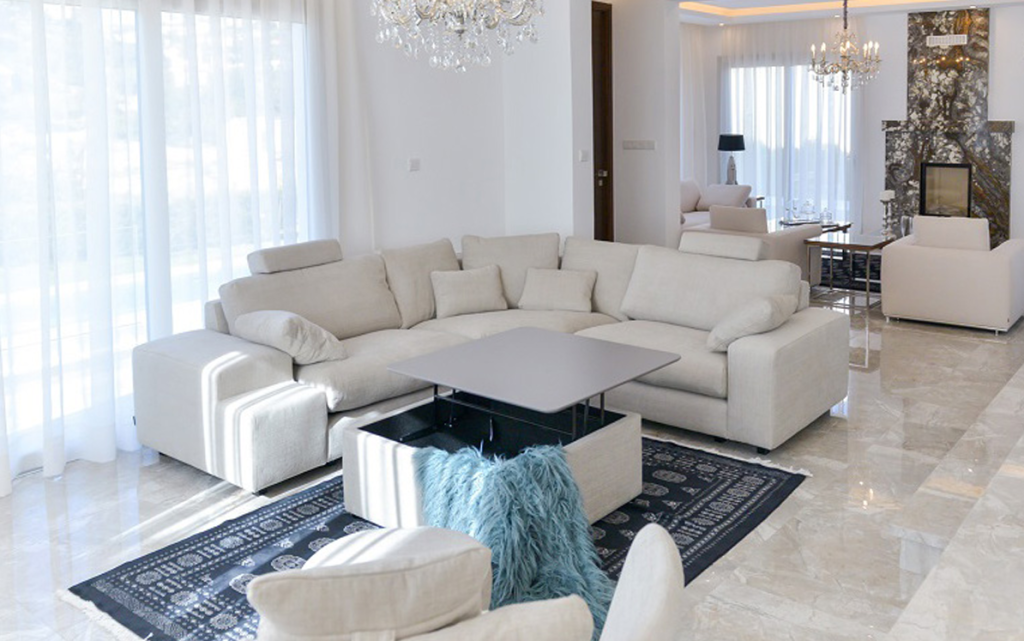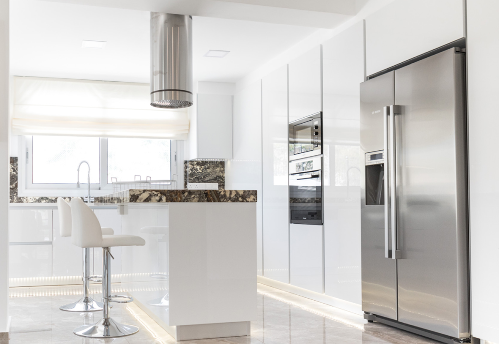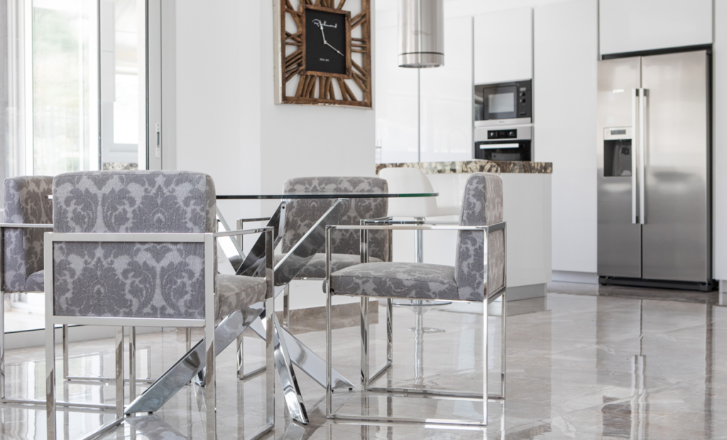 The heart of the villa is the Chef’s gourmet kitchen with imported granite detailing and equipped with stainless steel Bosch appliances that highlight the designer high gloss white finish.