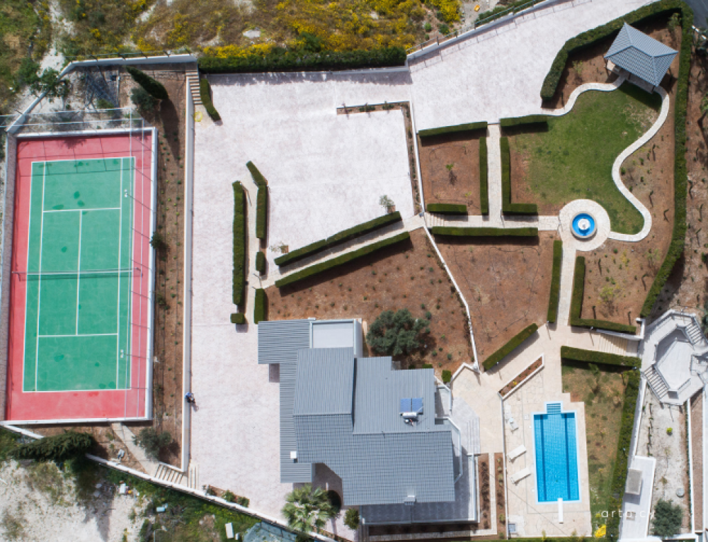 A luxurious 5-bed, 3-bath villa with a pool, tennis court, and breathtaking sea views. Its exquisite modern design, gourmet kitchen, and outdoor entertainment space will redefine upscale living and elevate your lifestyle