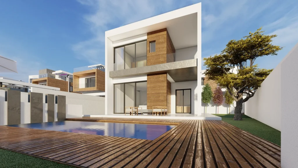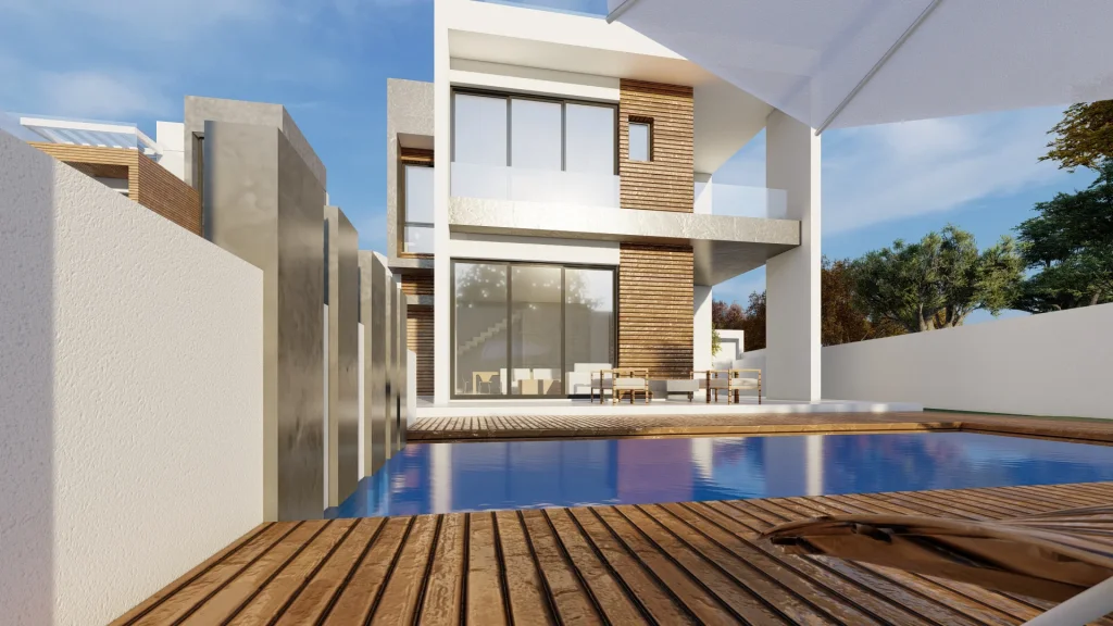 The project is an elite residential development in Agios Tychonas of Limassol. These finely designed villas are presented through superb and timeless architecture, boasting decks with dreamy swimming pools, patios, gorgeous materials, refined finishes and landscape views.