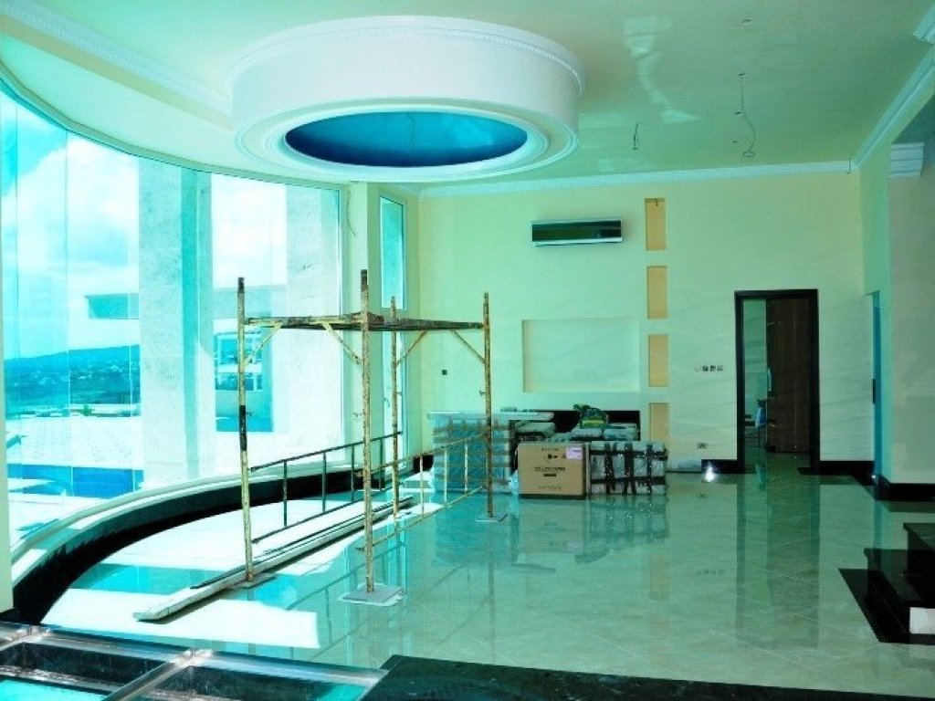 This is a Five-Bedroom Villa fully furnished with designer's style modern furniture. The plot is 1,400 m2, and the villa is 410m2 covered area and 80 m2 covered verandahs/BBQ/carport . Living room, dining room and round bed for Master bedroom are Roberto Cavalli. Two bedrooms are on First Floor, one in Ground Floor and two in the Basement. There is an-elevator for the three floors apart from the glass-design staircase. The Villa has "smart house" automation, a state-of-the-art "SHEER" kitchen Fully Automated which also includes stone-grill, wine bottle cooling and movie screen. The Dining Table and Chairs are situated on-top of the in-floor Aquarium. In Living Room, there is a Remote-Controlled Gas Plasma Fireplace with a 65- inch Plasma Tv on top of it.Special CEILING designs throughout the Villa. Electric curtains are included in Living room and Master bedroom rounded areas. The entrance door is handmade with special carved designs in both sections. The Internal doors are specially ordered low-noise closing with Swarovski handles. In Basement, there is a Cinema Room with leather sofas and bar. There is a Laser-beam system, CCTV and security system with web. The Baths in Master bedroom and Basement are JACUZZI baths. Modern big size colour-rain umbrella type LED shower mixers. All bathrooms have VERSACE Tiling and Accessories. The villa has underfloor heating throughout the three floors and special energy saving walls. LG ARTCOOL air-conditioning MIRROR units are installed which are lowdecibel. The swimming pool has LED lighting with glass walls in 5 places and internal sitting area. It also includes fountains with dancing waters with music (Las Vegas style). There is BBQ area covered with modern curtain.