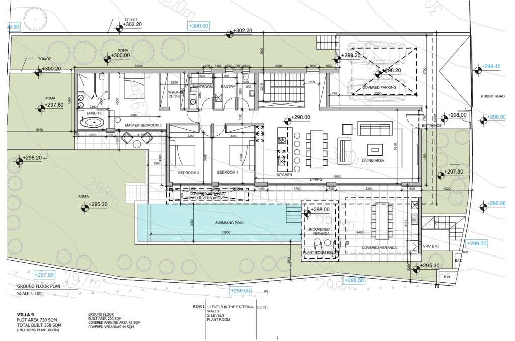 The living, dining, and kitchen areas are designed with a focus on spaciousness, allowing for comfortable and stylish entertaining. Outdoor enthusiasts will appreciate the inclusion of an outdoor kitchen and barbecue area. Practical features such as a laundry area, storage area, and plant room add convenience to daily living.