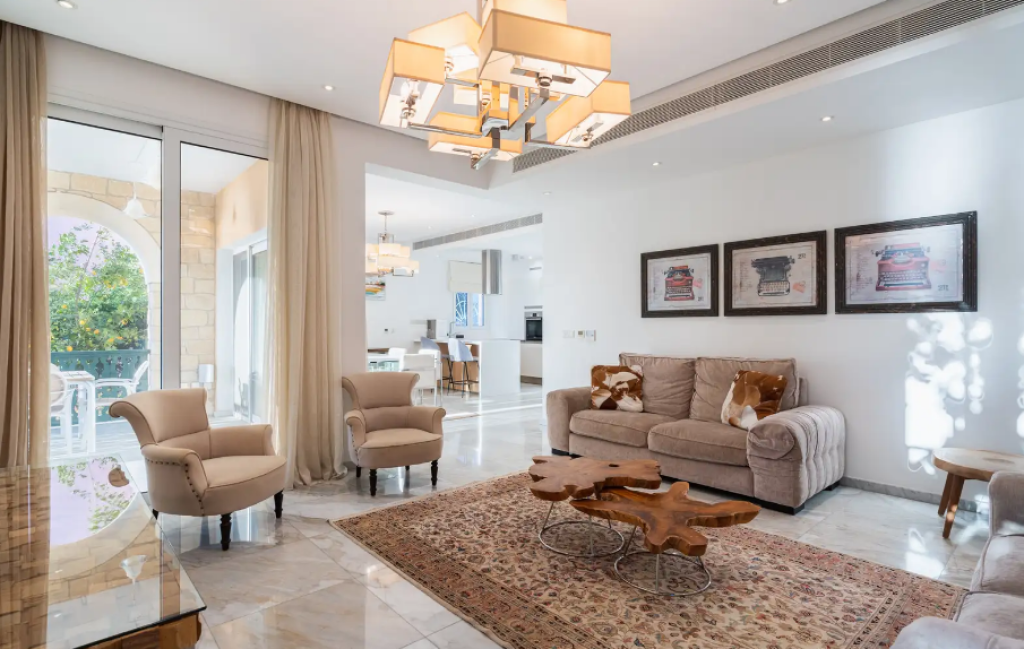 Enjoy living on the beach with views of the sandy beach, and in walking distance to the city center. This unique villa is now available for rent on the beach side of the Limassol Marina. Live in the city center and at the same time on the beachfront. Wake up in the morning to the sea breeze and walk to the old town of Limassol for a traditional lunch. Five Bedroom villa on 3 floors directly on the beachfront situated on a large plot with private swimming pool and a private garden leading directly on the beach.