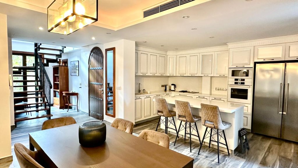This charming 185 m² villa sits on the very first line of the sea, offering breathtaking views and immediate access to the shoreline. Located within a prestigious gated complex with 24/7 security, it provides a peaceful and private living environment complemented by exceptional communal facilities, including a large swimming pool, a fully equipped gym, landscaped walking areas, and direct sea access.