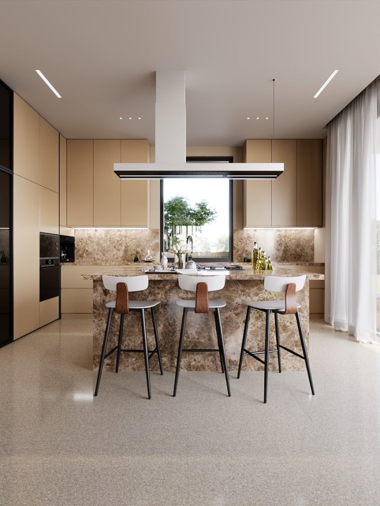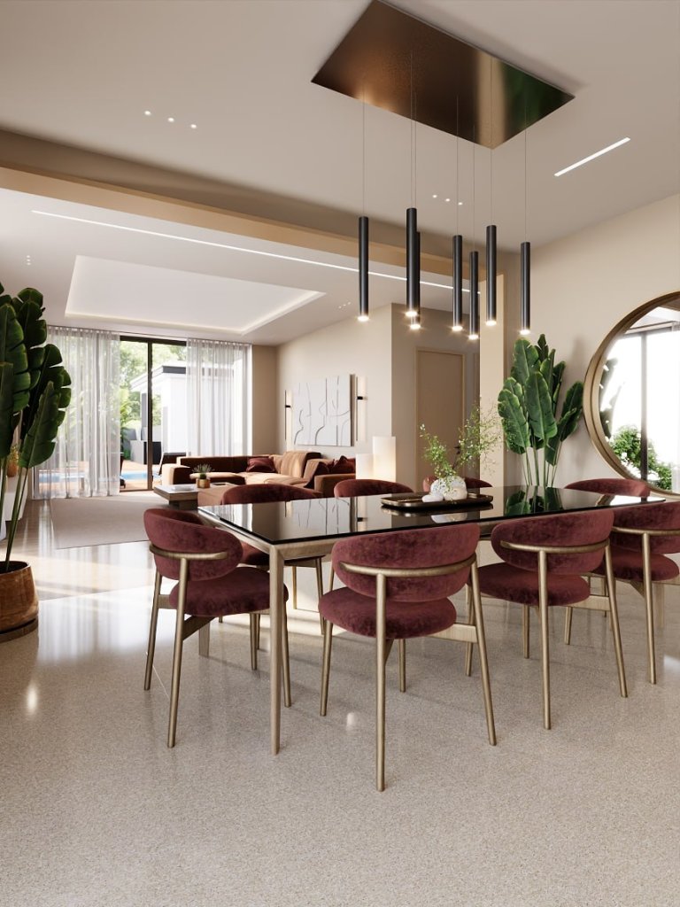 The villa features five spacious en-suite bedrooms, each exceeding 20 m², ensuring privacy and comfort for residents and guests alike. The layout is thoughtfully planned to create a seamless flow between elegant living areas and private spaces, enhanced by premium finishes and high-quality materials throughout.