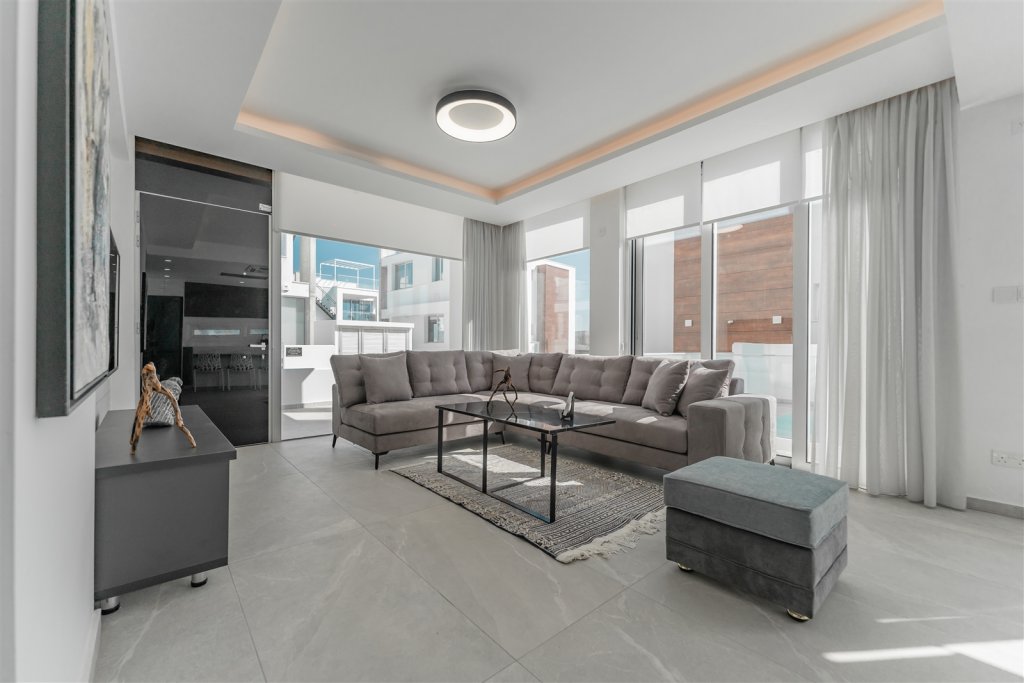 Set on a spacious 798 m² plot, the residence offers generous interior spaces, abundant natural light, and harmonious indoor-outdoor living, creating a sophisticated environment ideal for family life and entertaining. Its prime location near Athalassa Avenue and Oroklini’s coastline ensures easy access to both city amenities and the beach.