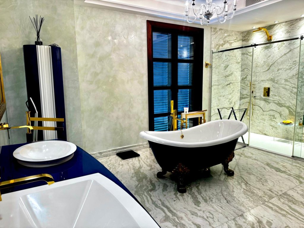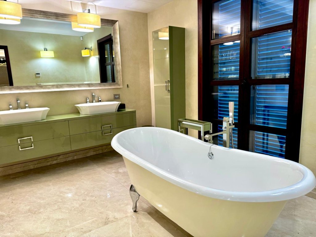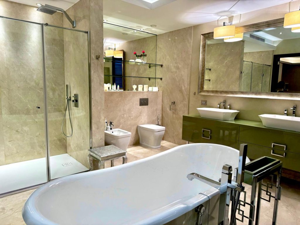 This luxurious residence is located at the most exclusive seafront area of Limassol, only 150 m away from the sea. With stunning views of the Mediterranean Sea, this beautiful residence is surrounded by big garden with mature trees and plants in an idyllic setting. The villa boasts the highest quality in terms of design and detailing. Colonial architecture combined with classical elements and luxurious and expensive finishes make this residence truly Royal, conveying a sense of luxury, heritage, success and style. It has all the modern luxury specifications like underfloor heating, VRV A/C concealed systems and еру latest automation systems. The 8x4m swimming pool is next to a covered patio creating a cosy focus for the outdoor activities. The residence was built in 2010, and with an area of almost 800m2 and 3 floors located on a plot of 800m2, the residence consists of the Ground floor with spacious living rooms, dining rooms, kitchen, hamam, maid’s room, massage room and other supporting areas. The 1st and 2nd floor are divided into two separate independent blocks for privacy. There are six ensuite bedrooms all with walk in closet.